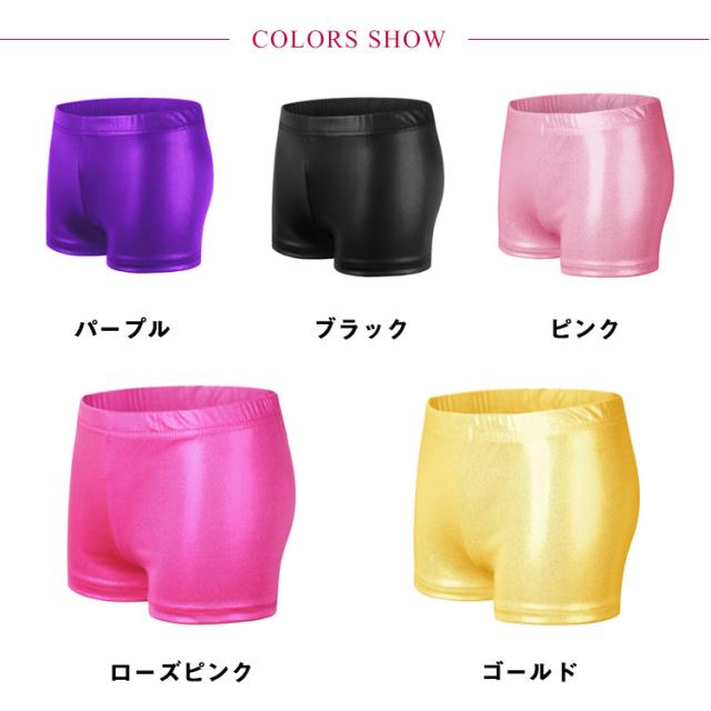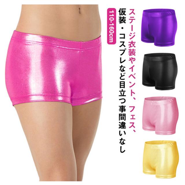 メタリックショートパンツ インナー ダンス衣装 光沢 衣装 ヒップホップ キッズ ショートパンツ ショーパン 見せパン ホットパンツ キラキラ キッズダンス キッズダンサー インナー コスプレ