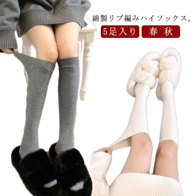 スクールソックス 春 リブ編み 厚手 オーバーニー ハイソックス 靴下 5足入り ソックス リブ 保温 レディース 秋 防寒 冬 オーバーニーソックス 通勤 くつ下 学生 女子高校生 無地