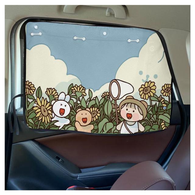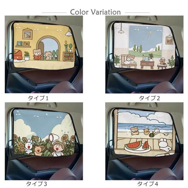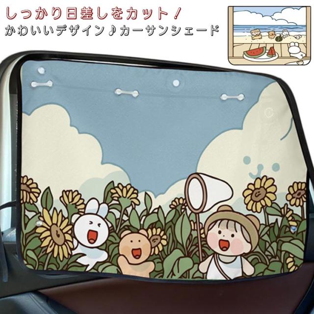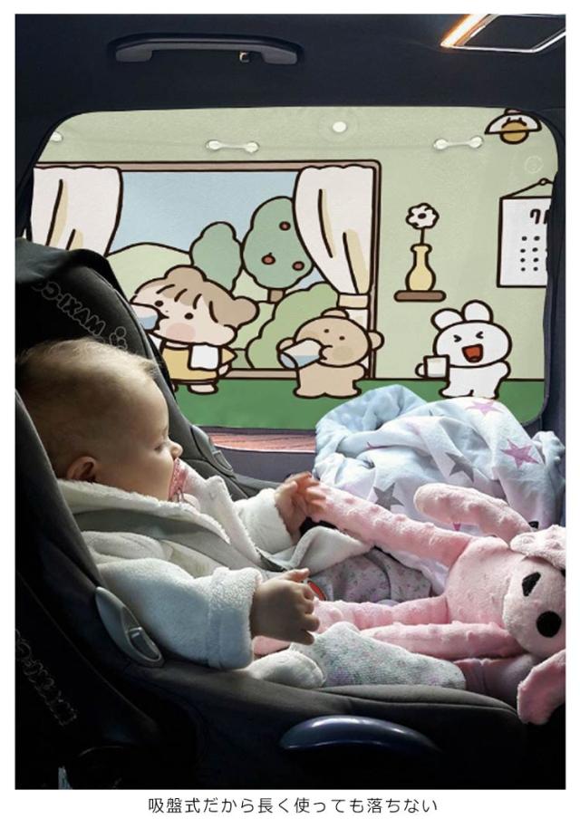 | しっかり日差しをカット!かわいいデザイン♪カーサンシェード 吸盤式だから長く使っても落ちない 紫外線カット加工済だから赤ちゃんや子供の敏感な肌にも安心! ワイドなサイズ感で、車種に関係なく幅広くご使用頂けます | |