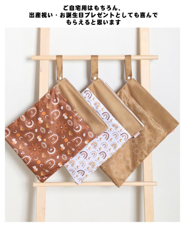 | 防水加工が施されているおむつポーチ。 赤ちゃんのオムツ入れにはもちろん、海水浴やプール、スイミングの水着入れ。保育園や幼稚園の着替え・汚れ物入れ。様々な用途にお使い頂けます。 2つのポケットで、おむつや汚れ物を分けて入れることができます。 ストラップ付きなので、持ち歩きやベビーカーにぶら下げ可能。 ご自宅用はもちろん、出産祝い・お誕生日プレゼントとしても喜んでもらえると思います。 ※防水加工が施されておりますが、完全防水ではございません。 | |