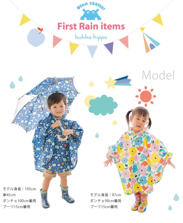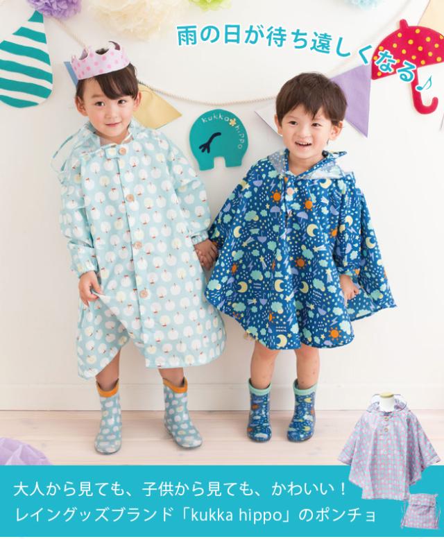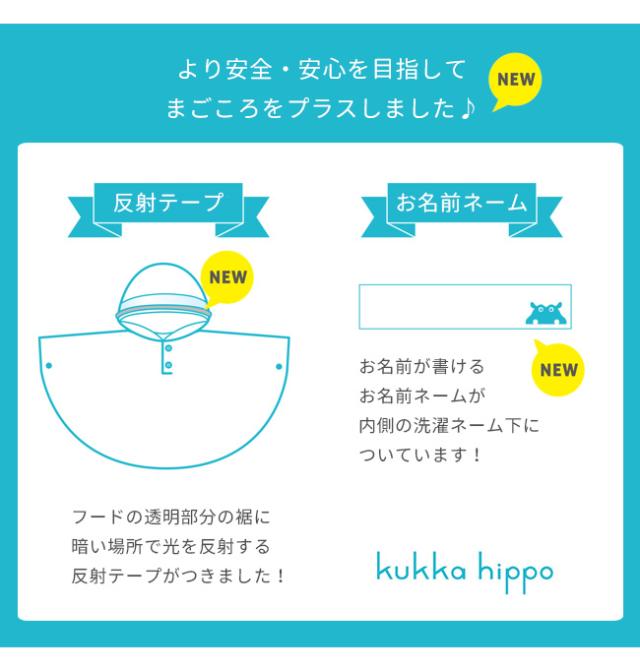 kukka hippo クッカヒッポ レインポンチョ 90cm 反射プリント&お名前ネーム付き(レインウェア レイン ポンチョ おしゃれ かわいい キッズ こども 子ども 子供 男の子 女の子 通園 カッパ かっぱ おすすめ 人気 ブランド 2歳 梅雨 雨 雨天) 即納