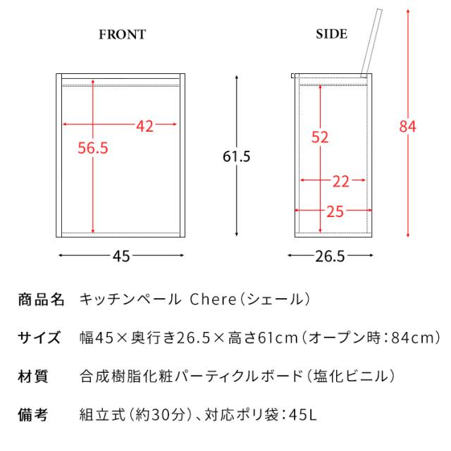 | 備考 | 組立式(約30分)、対応ポリ袋:45L |
