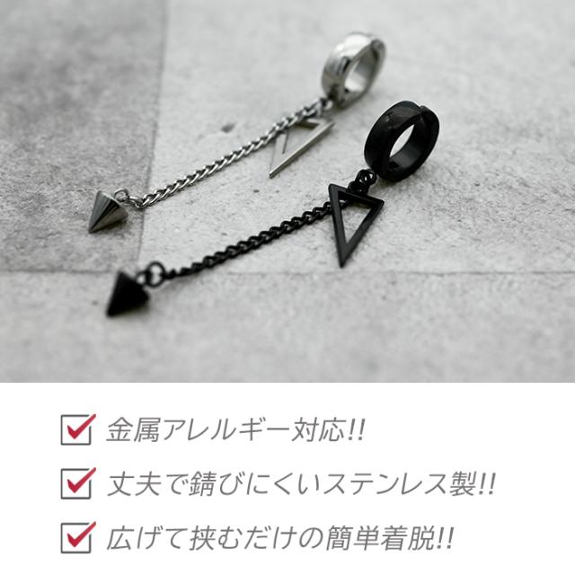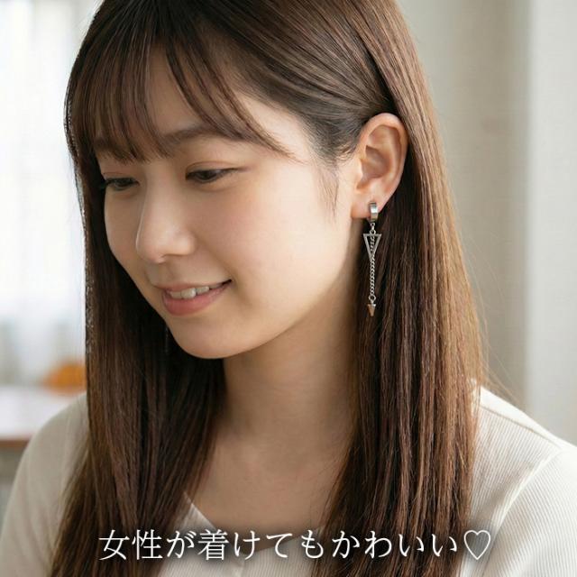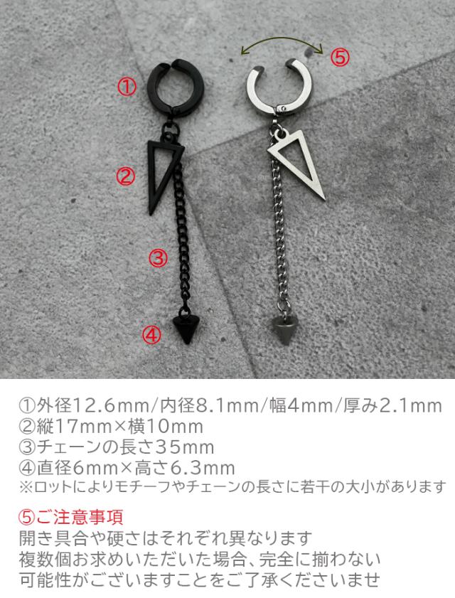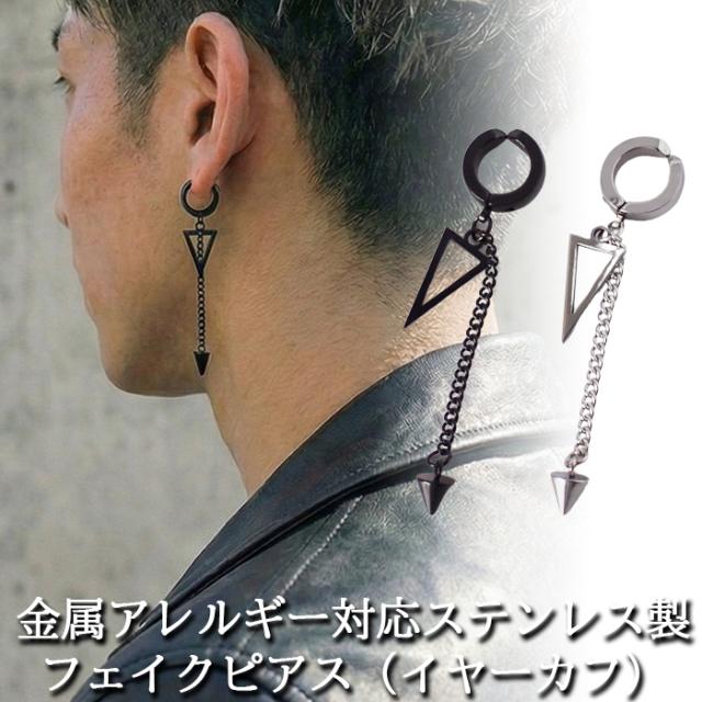 イヤーカフ メンズ 三角形 円錐 チェーン フェイクピアス ノンホール ピアス穴不要 中折れ フープ 金属アレルギー対応 ステンレス 片耳 1個 男性 アクセサリー かっこいい イヤリング