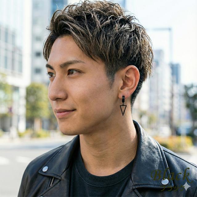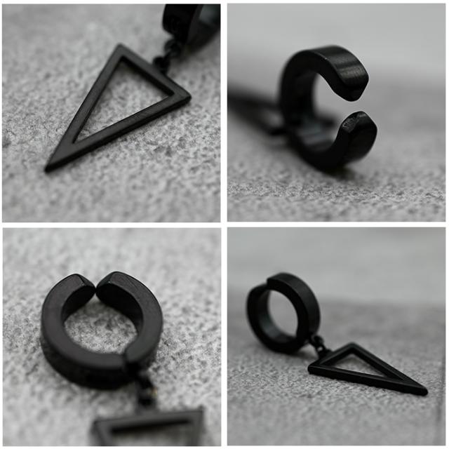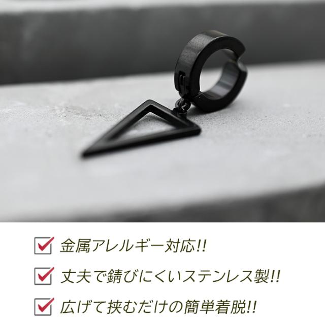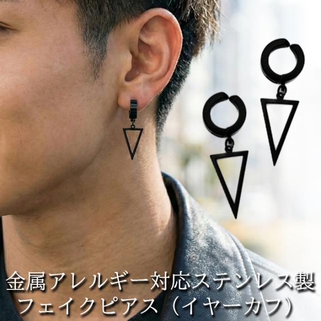 イヤーカフ メンズ フェイクピアス ノンホール 中折れ 三角 ブラック シルバー 金属アレルギー対応 ステンレス 片耳 1個