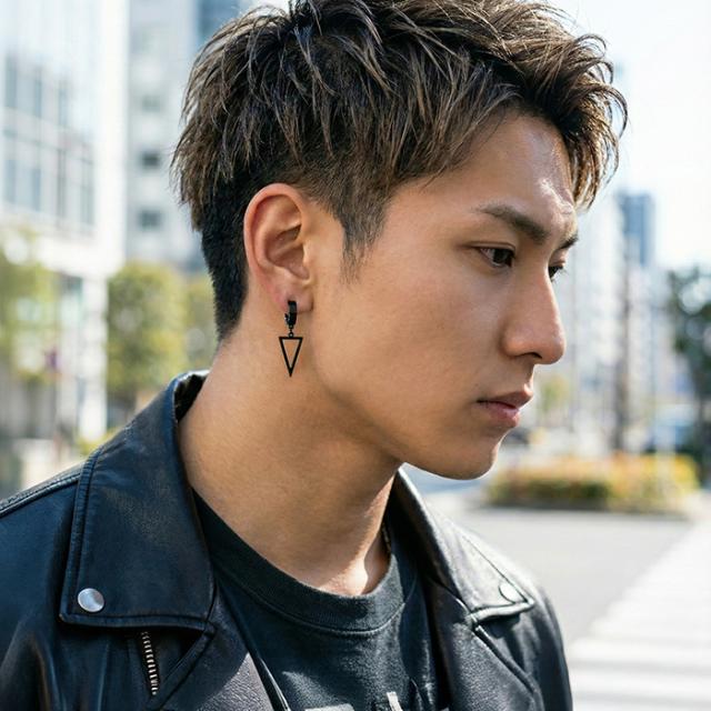 | イヤーカフ メンズ ピアスホール不要 中折れ フープ カッコイイ 三角形 揺れる チャーム 小ぶり シンプル |