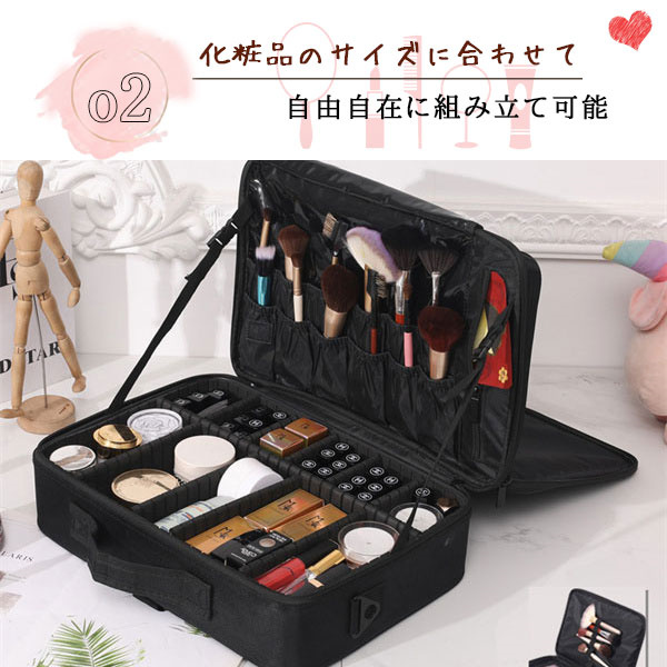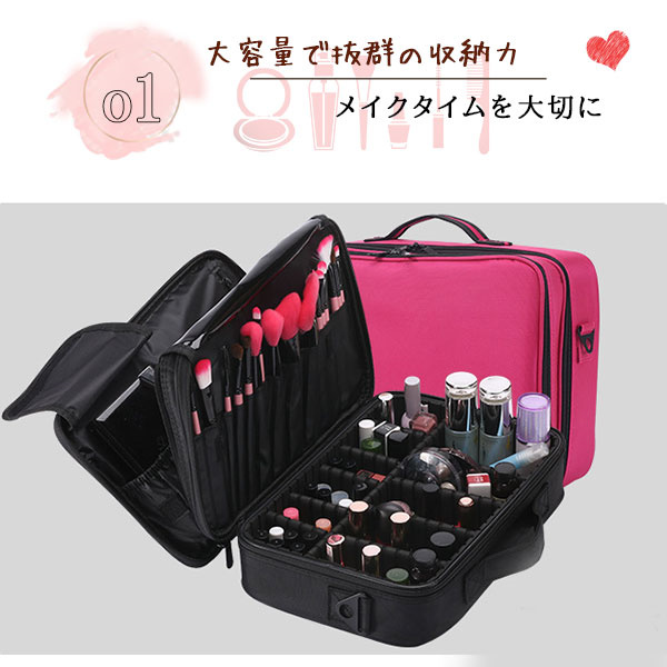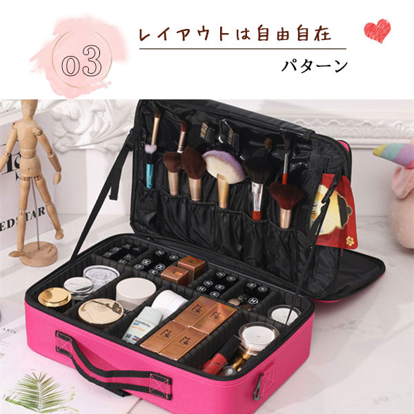 メイクボックス 大容量 コスメボックス メイク ボックス 使いやすい 大きめ 化粧ポーチ メイクポーチ 持ち運び ブラシ入れ 小分け 仕切り 筆入れ
