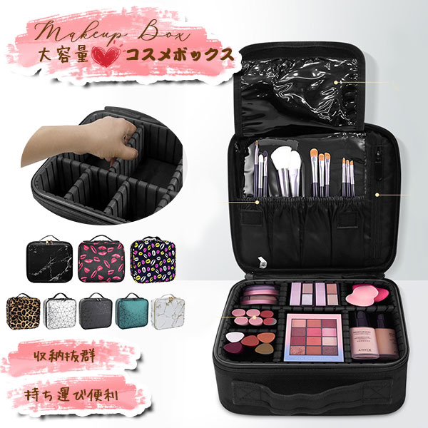 メイクボックス 大容量 コスメボックス メイク 化粧 収納 ボックス 使いやすい 化粧ポーチ メイクポーチ 持ち運び ブラシ入れ 仕切り 筆入れ