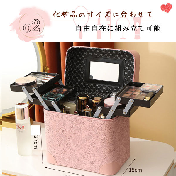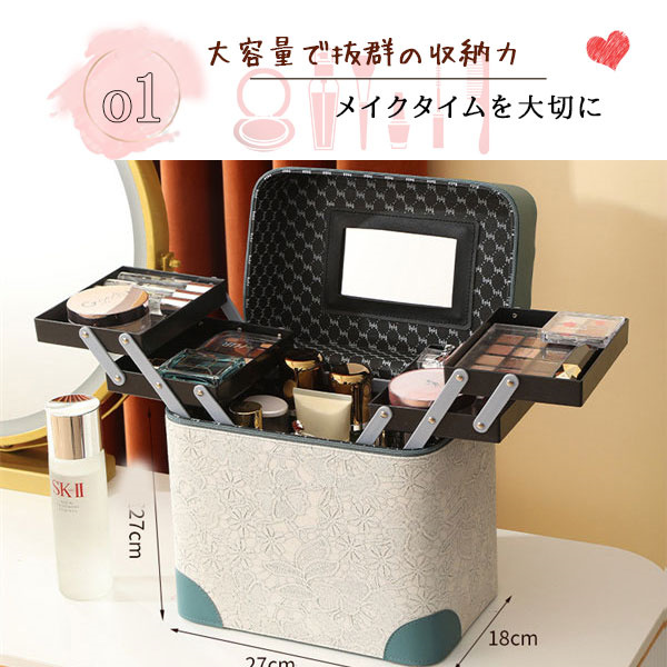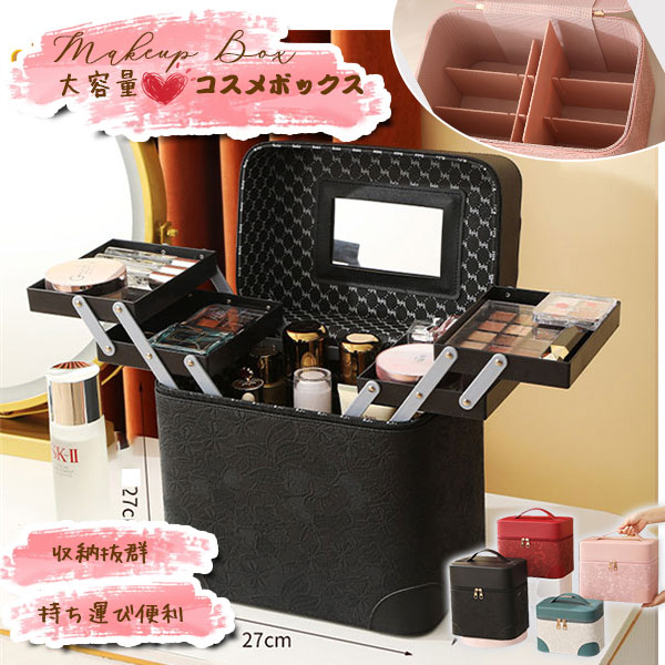 メイクボックス コスメ収納 大容量 鏡付き 持ち運び プロ おしゃれ コスメボックス コンパクト 化粧品 コスメ アクセサリー ネイル 化粧ポーチ