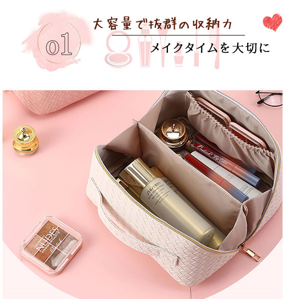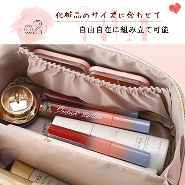 ◎仕切りを自由にレイアウト出来る大容量でたっぷり収納できるメイクポーチ