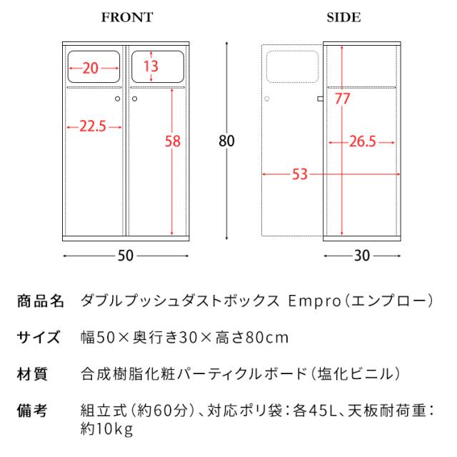 | 備考 | 組立式(約60分)、対応ポリ袋:各45L、天板耐荷重:約10kg |