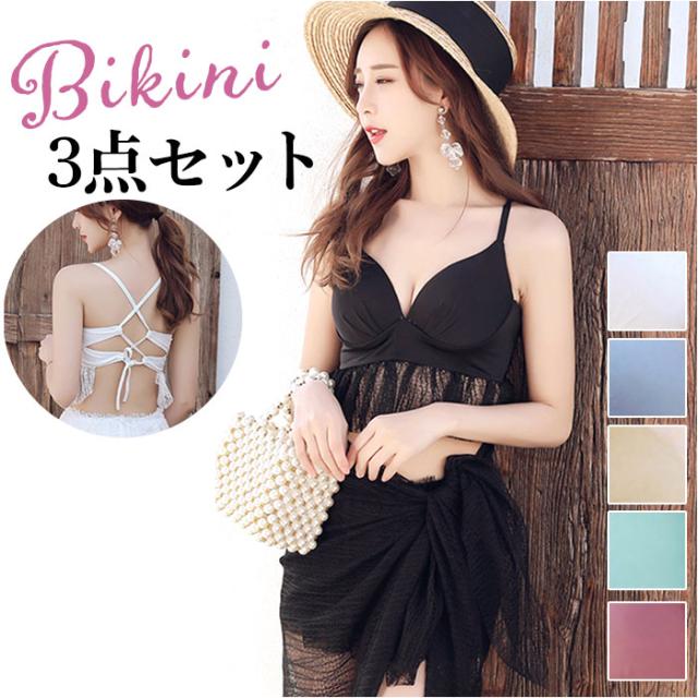 レディース 水着 3点セット 通販 体型カバー ビキニ セパレート タンキニ 海水着 水泳着 スイムスーツ 大きい 大きいサイズ パレオ 短パン ショートパンツ フリル 可愛い かわいい