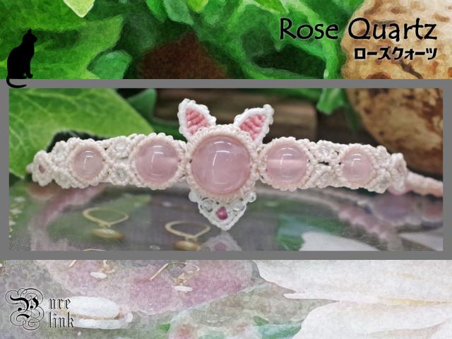 猫耳!?恋を呼ぶ慈愛の魔石『ディープローズクォーツ』マクラメ編みニャンコブレスレット