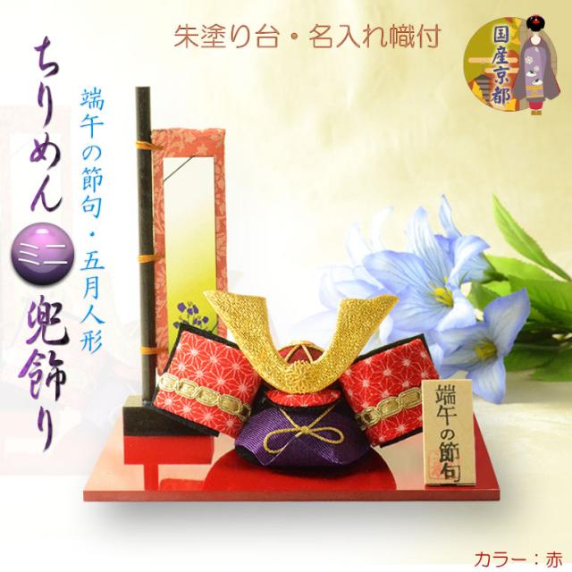 国産・節句飾り【端午の節句:国産京都 幟付き・ちりめんミニ兜飾りセット 赤】卓上飾り 節句人形 こいのぼり 五月人形 五月飾り 昇鯉 男の子 室内飾り 菖蒲の節句