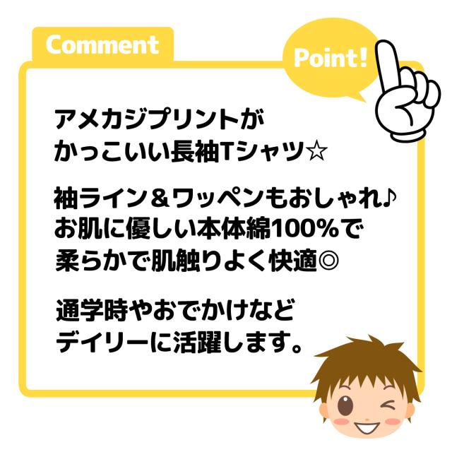 【送料無料】男児 キッズ 本体綿100% 長袖 Tシャツ アメカジプリント ワッペン 子供服 男の子 110cm 120cm 130cm nw-0992【メール便対応】