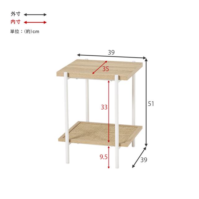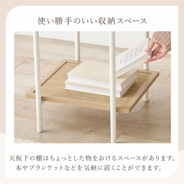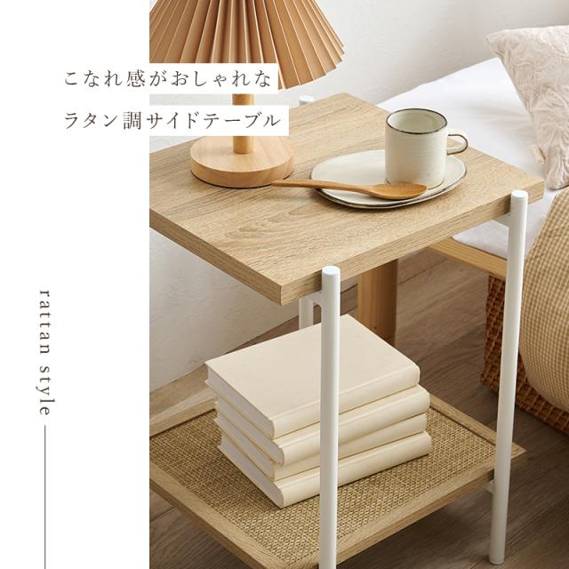 韓国風インテリア サイドテーブル 【送料無料】 おしゃれ 四角 収納 棚付き ラタン調 北欧 白 木 ミニテーブル ソファ 寝室 角型 ナチュラル 木目