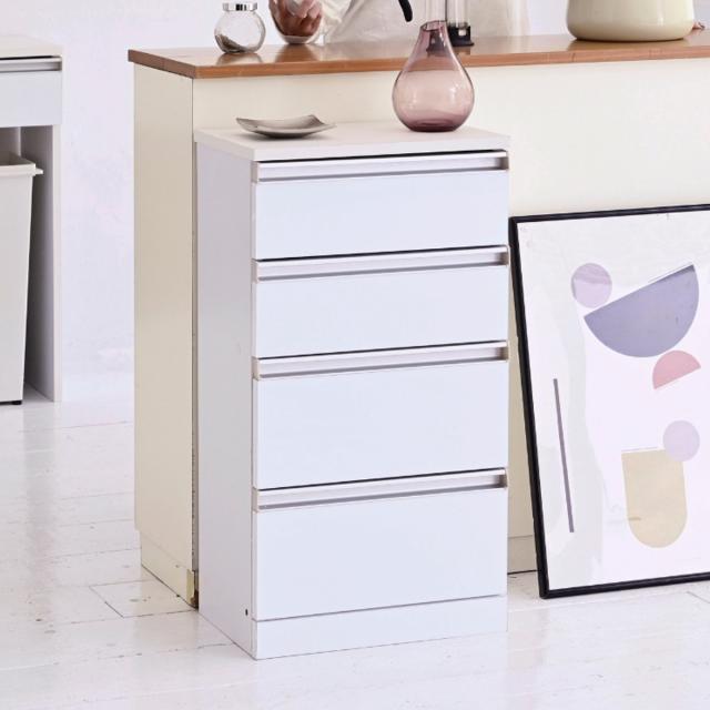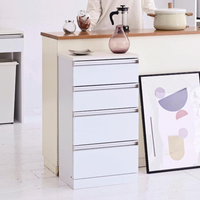 カウンター下収納 チェスト 4段 鏡面前板 幅40cm ( カウンター下 収納 棚 リビング収納 間仕切り カウンター カップボード リビング 引き出し 四段 シンプル ホワイト )