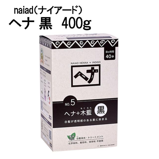 白髪染め ヘナ+木藍 黒 (No.5) 400g ヘアカラー Naiad ナイアード 毛染め カラーリング トリートメント効果