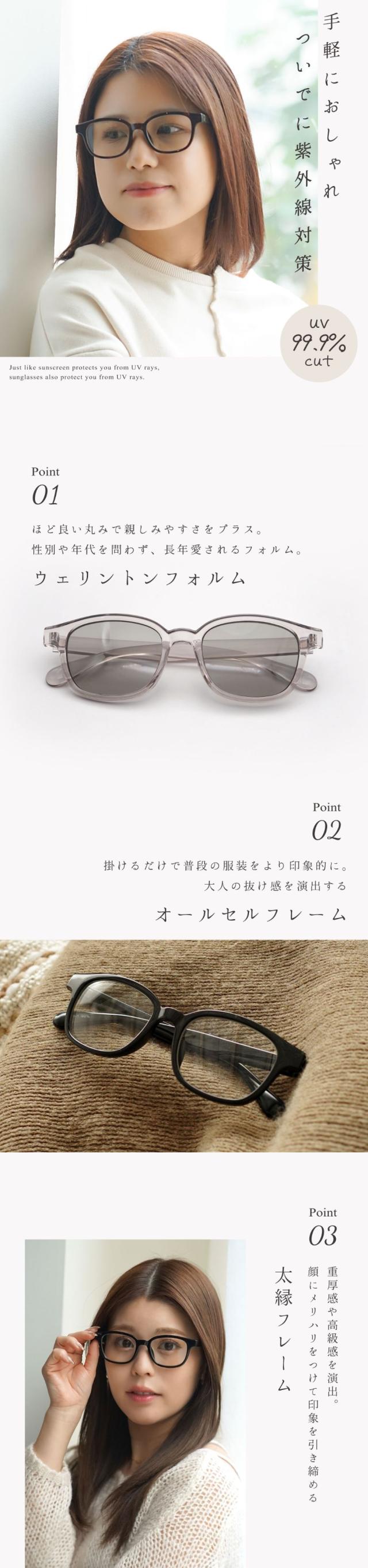 サングラス レディース おしゃれ 伊達メガネ uvカット 紫外線カット 鯖江企画 ウェリントン 薄い色 かわいい 専用ケース付き GG eyewear 5043