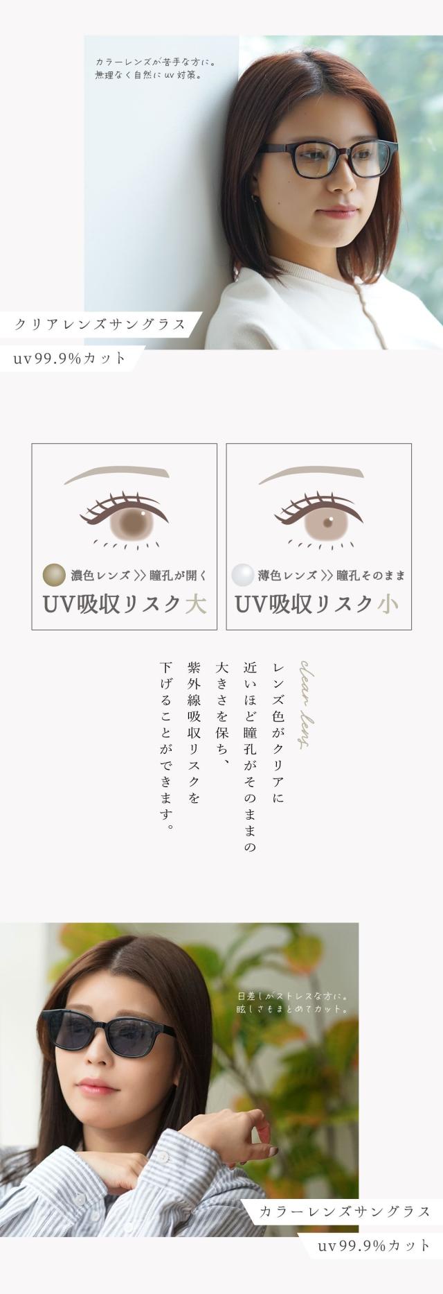 カラーレンズだけでなく、クリアレンズサングラスも取り揃えております。