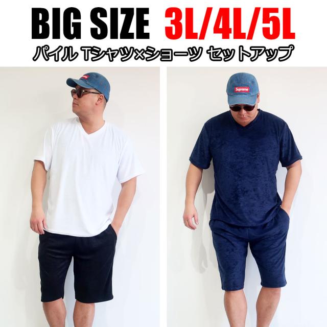 メンズ 大きいサイズ セットアップ ハーフパンツ 3L 4L 5L 上下セット 上下 パイル素材 ルームウエア ホワイト ブラック ネイビー チャコール 部屋着 パジャマ リラクシングウエア 半袖Tシャツ ショートパンツ カジュアル 大人 30代 40代 50代 おうち おうちコーデ