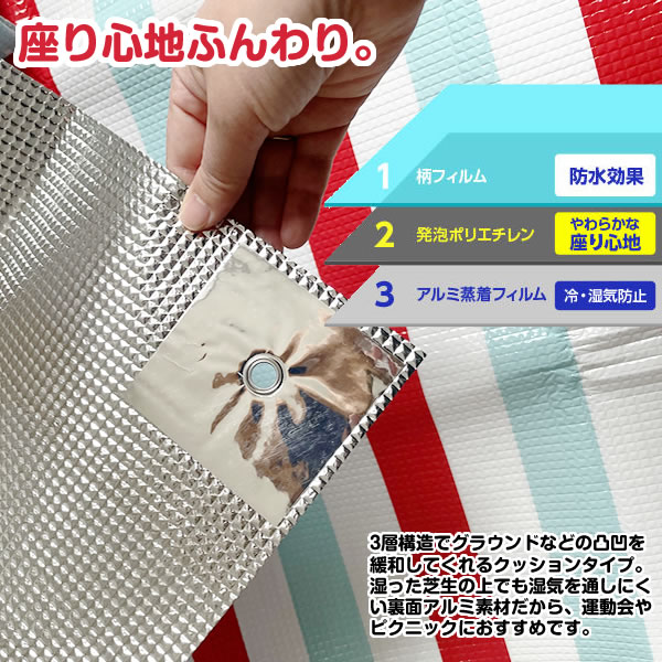 ピクニック、バーベキュー、ビーチなどの行楽や、子供の運動会での敷物、遠足マットに大活躍。