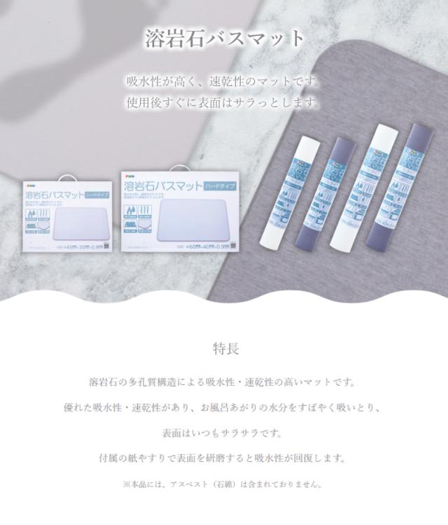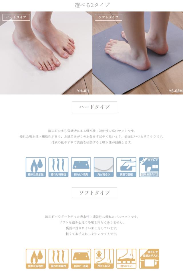 溶岩石パウダー配合。吸水性が高く、速乾性のマットです。使用後すぐに表面はサラっとします。