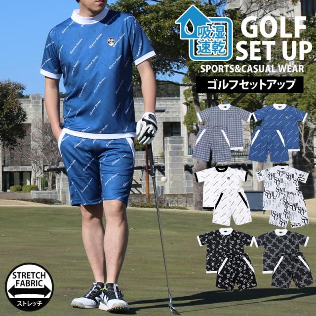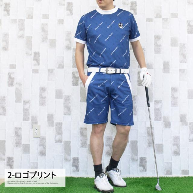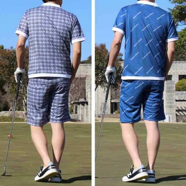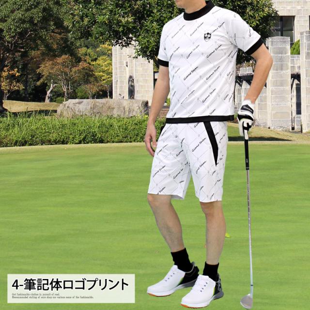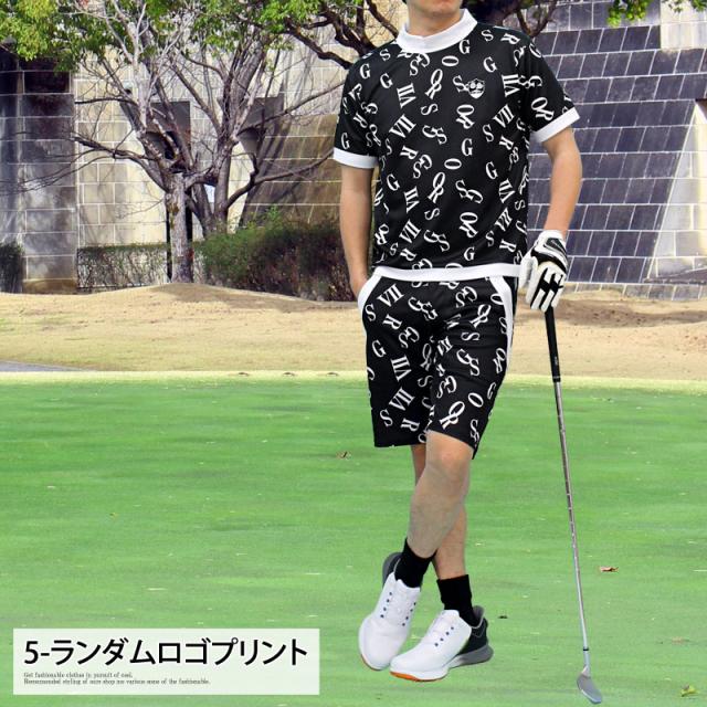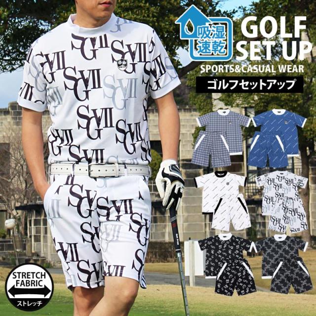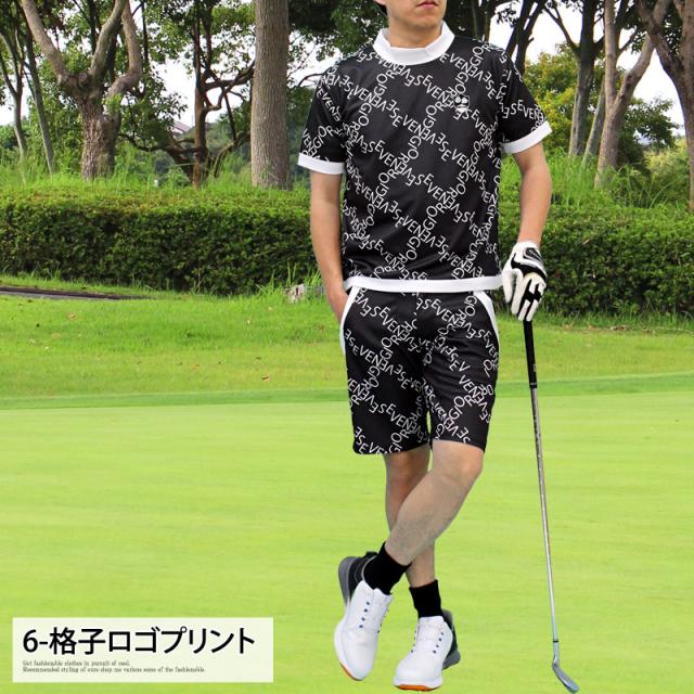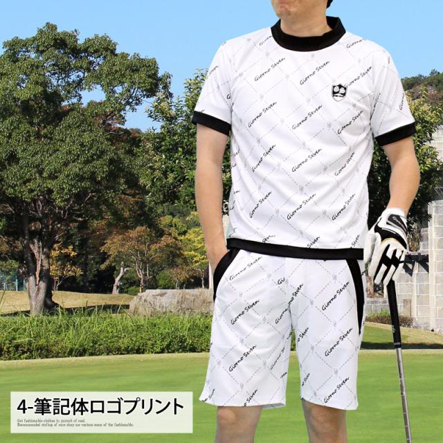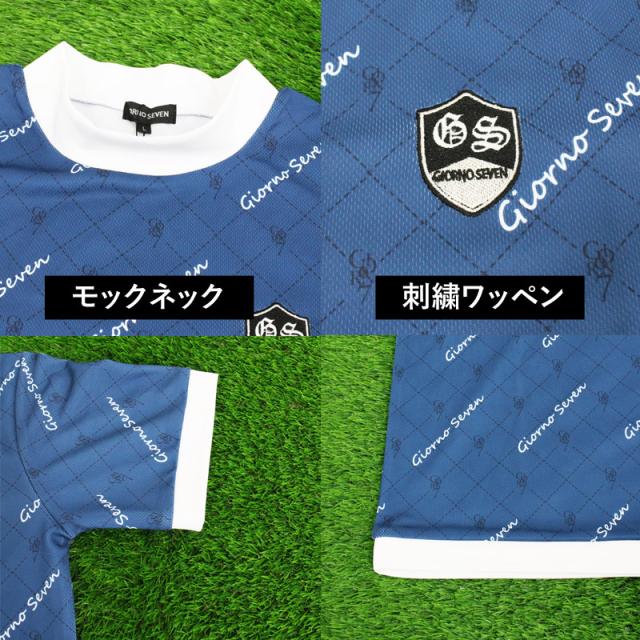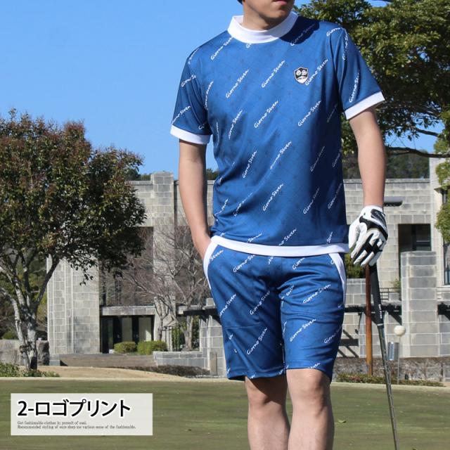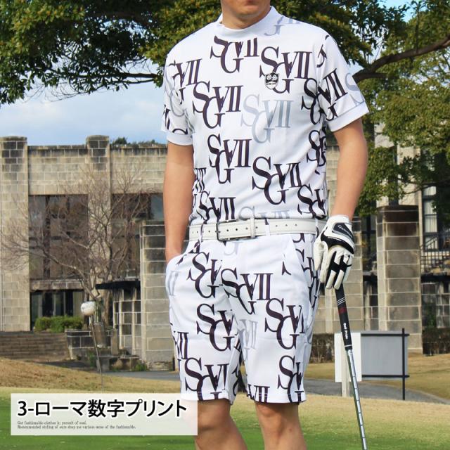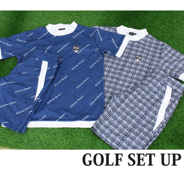 M~3L 新作 春 夏 送料無料 ゴルフウェア セットアップ 上下 メンズ モックネックシャツ GIORNO SEVEN ジョルノセブン ハイネック おしゃれ ゴルフ 吸汗速乾ドライメッシュ ストレッチ ハーフパンツ ショート 半袖 総柄 春夏
