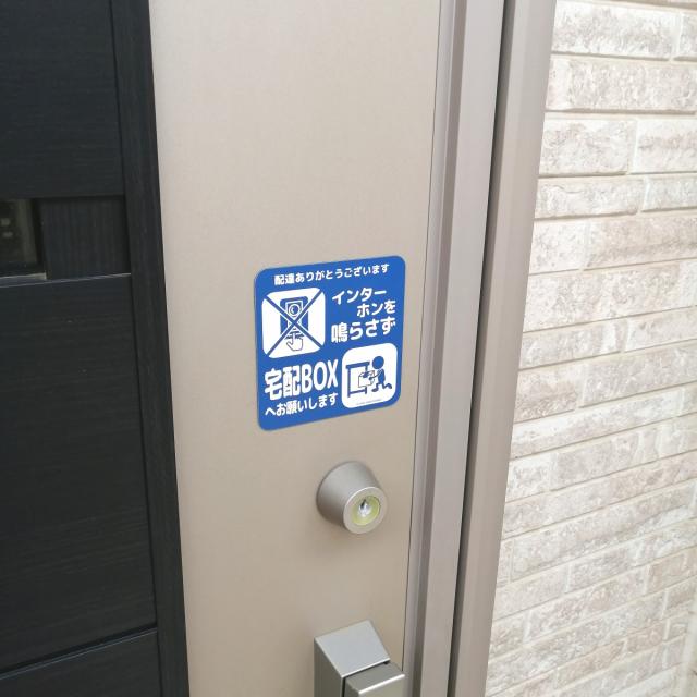 インターホンを鳴らさず 押さず インターホン不要 チャイム不要 で宅配ボックス利用をお願いするマグネットサイン。