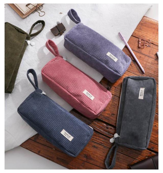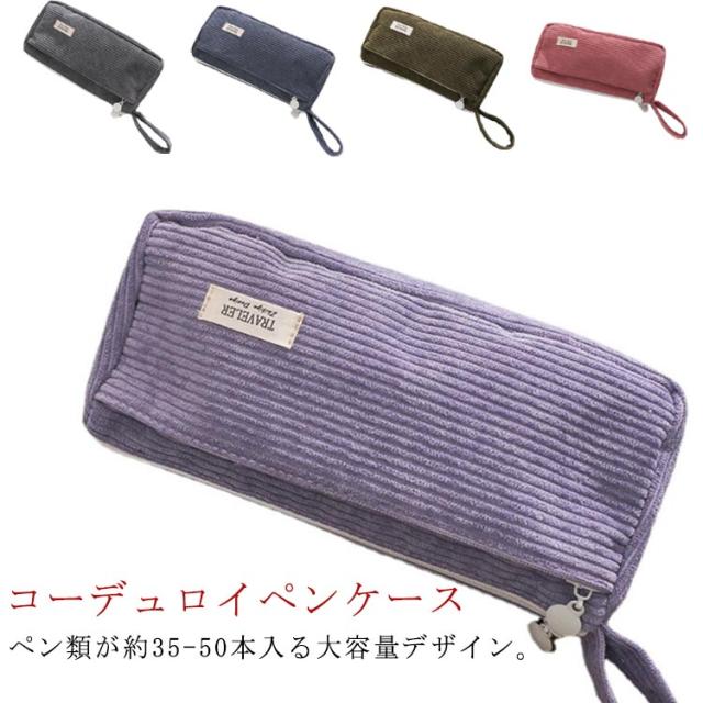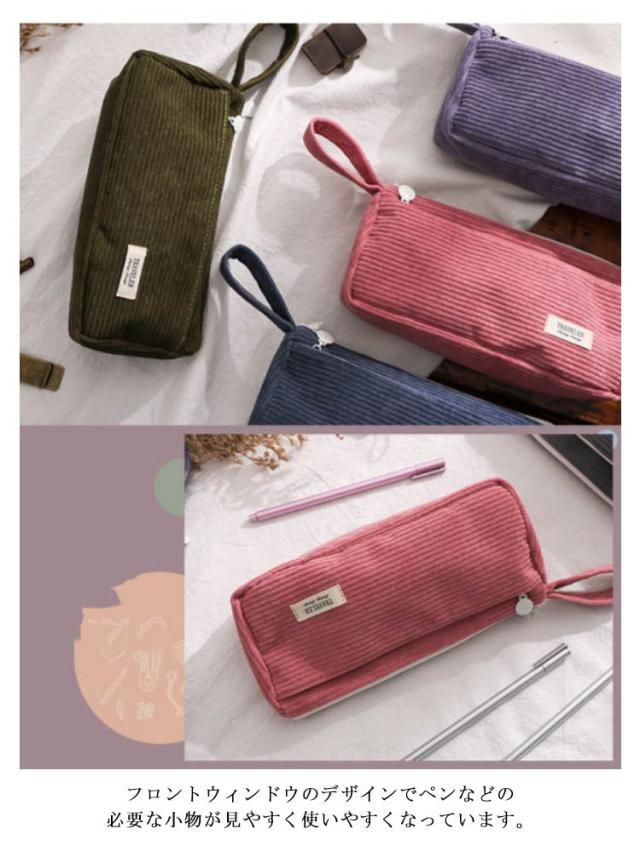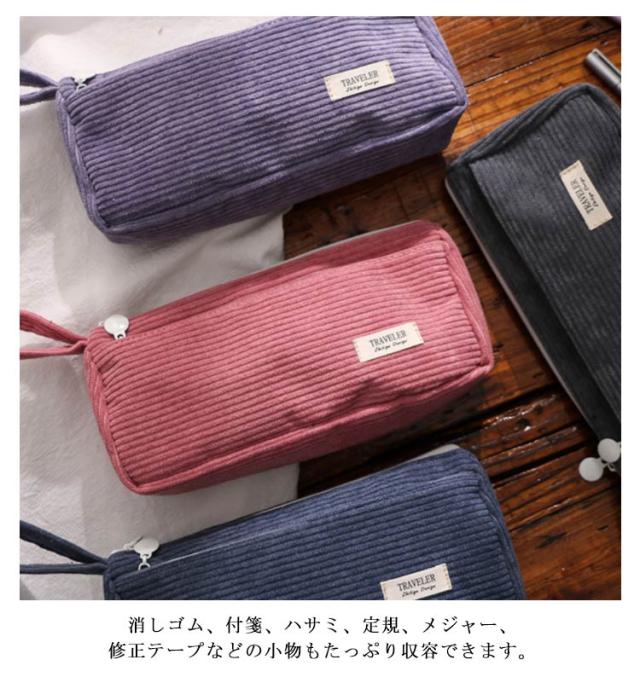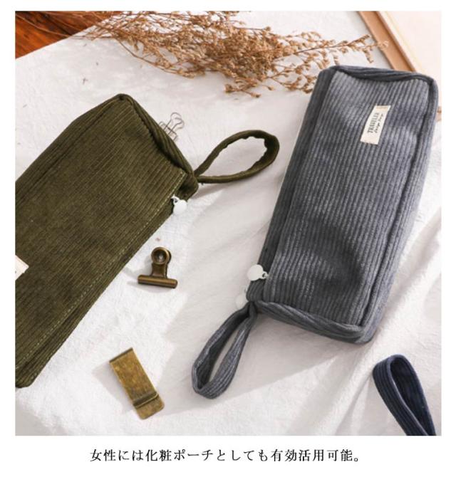 筆箱 コーデュロイ 大容量 ペンポーチ シンプル 学生 小学生 中学生 大学生 高校生 ペンケース コーデュロイペンケース ファスナー付き ハンドル付き ふで箱 ふでばこ シンプル かわいい 可愛い 男の子 女の子 文房具 筆記用具