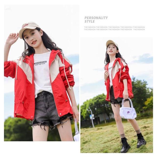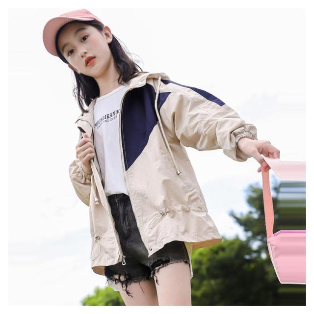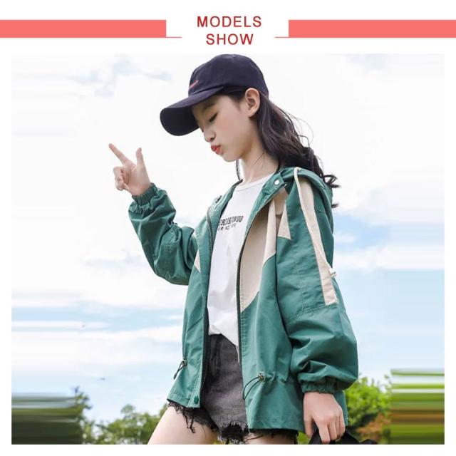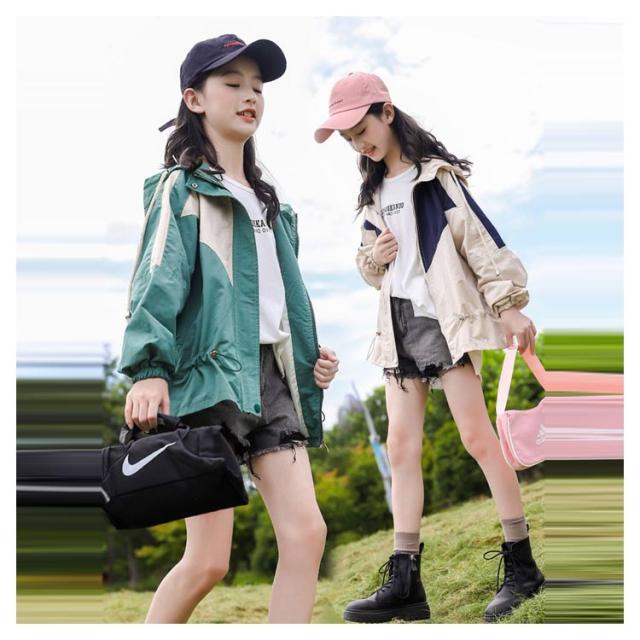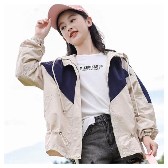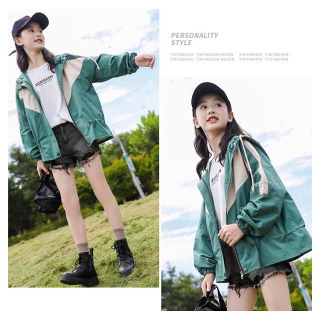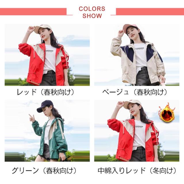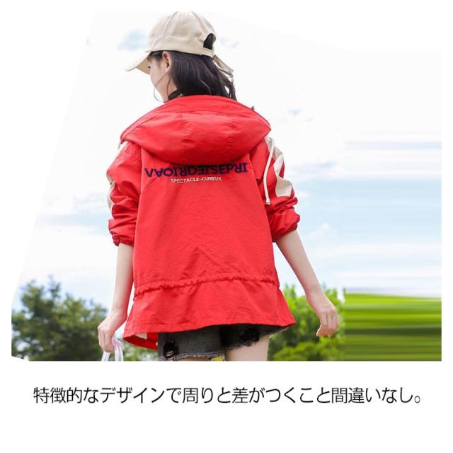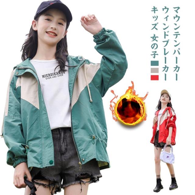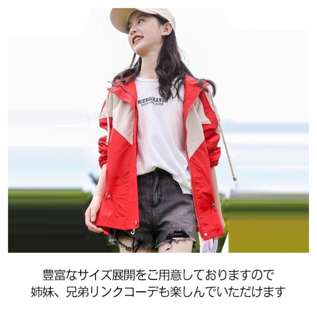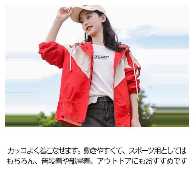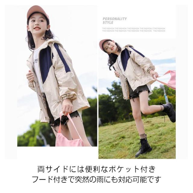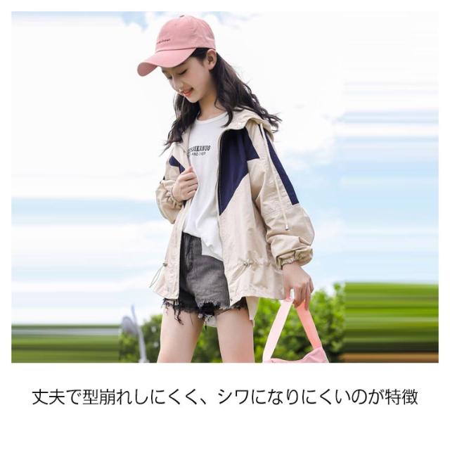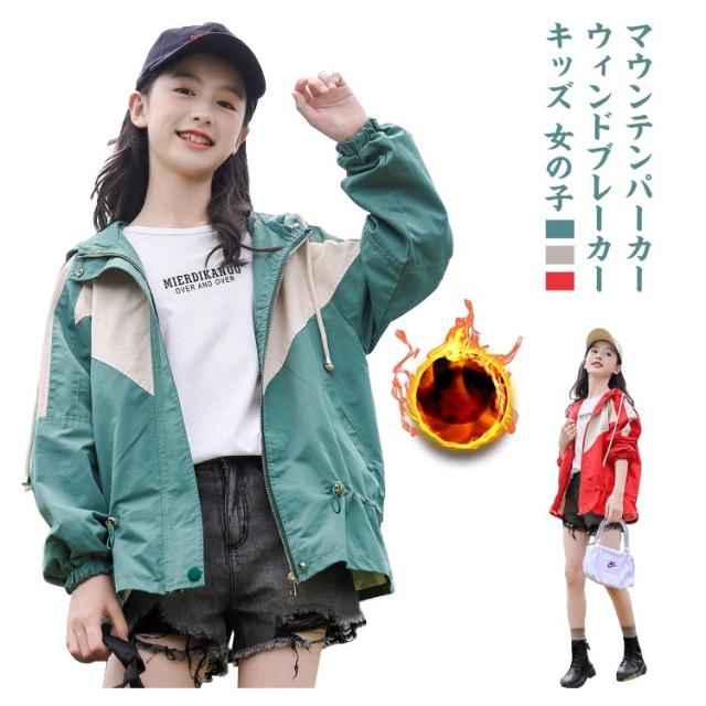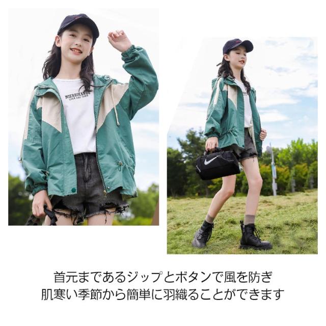 マウンテンパーカー キッズ 女の子 ウィンドブレーカー 子供服 アウター フード付き ジャケット ジャンパー 秋物 防風 春コート 薄手 ジップアップ トップス 配色 切り替え お洒落 ブルゾン ガールズ ジャンパー カジュアル 春 秋 送料無料 130 140 150 160 170