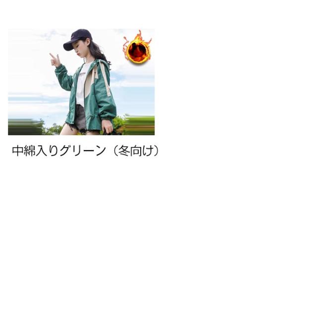 | 色 | レッド(春秋向け) ベージュ(春秋向け) グリーン(春秋向け) 中綿入りレッド(冬向け) 中綿入りグリーン(冬向け) |