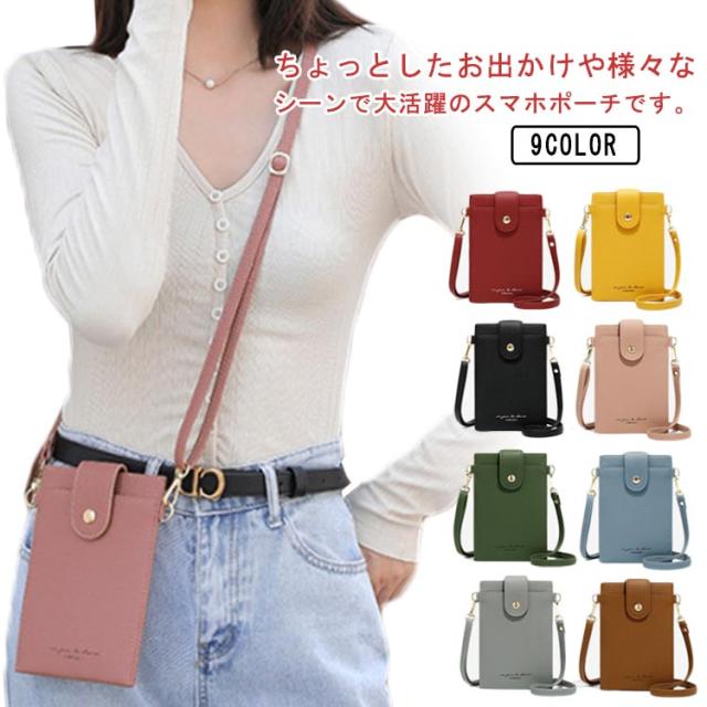 スマホポーチ レディース スマホポシェット 斜め掛け 財布 PUレザー カード入れ 小銭入れ お洒落 きれいめ 縦型 肩掛け スマホショルダー 軽量 薄型 お出かけ 送料無料