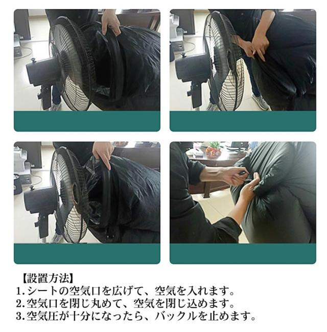 | ・一度座るとクセになる!すぐに使える、ポータブルエアーソファー! ・ポンプ不要で簡単に空気を入れられる手軽さもGOOD! ・体を包み込むような気持ち良さ♪誰もが快適に感じるエアーソファー。 ・ピクニックやキャンプなどのアウトドアシーンにも大活躍。手軽にくつろぎ空間を演出できます。 ・空気の出し入れがしやすいよう、開口部は大きく設計されています。 ・開口部を閉じるバックルはしっかりと締まるので、空気が漏れる心配もありません。 ・使い終わった後は、バックルを外して開口部に向かって空気を抜きながら折りたたんでいき、最後にバックルを留めて収納袋に入れてください。 ・女性や子供でも持ち運びやすく、収納もコンパクトで便利にお使いいただけます。 【設置方法】 1.シートの空気口を広げて、空気を入れます。 2.空気口を閉じ丸めて、空気を閉じ込めます。 3.空気圧が十分になったら、バックルを止めます。 ※無風状態の際には、風上に向かって小走りすると空気を充填しやすいです。 ※内側の透明ビニールは取らずにそのままご使用ください。 | |