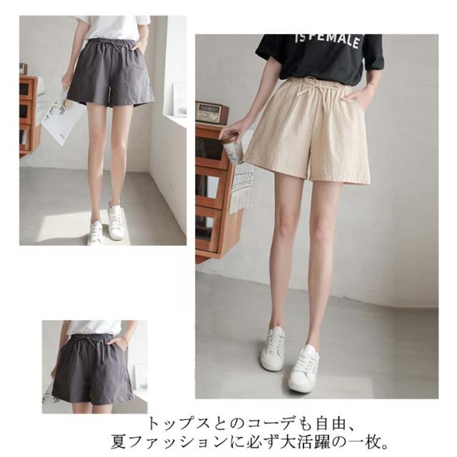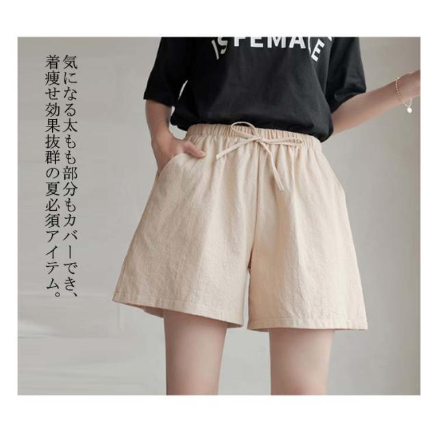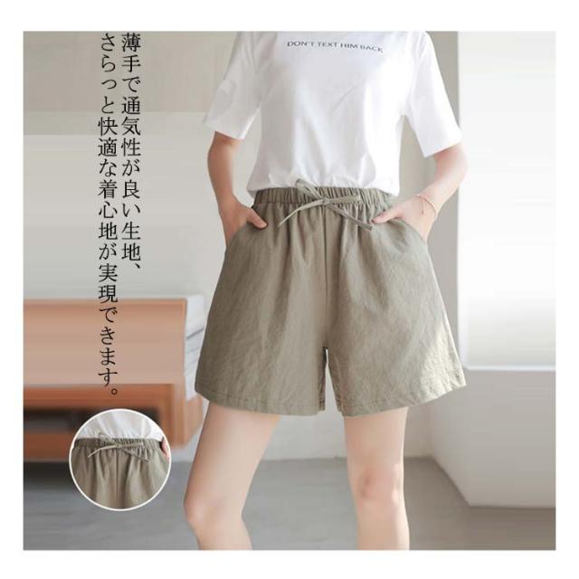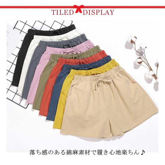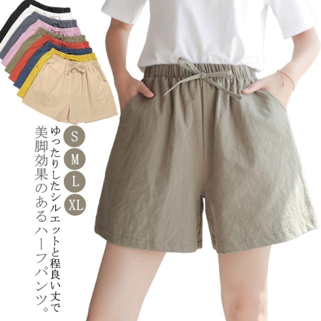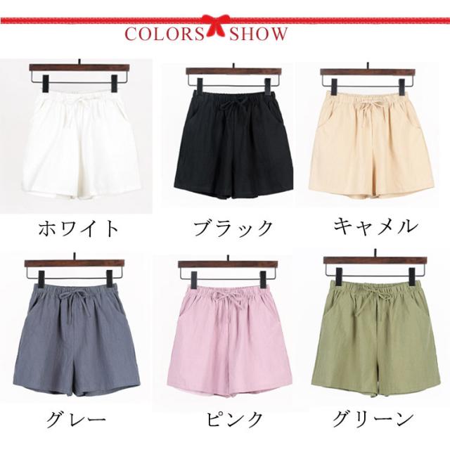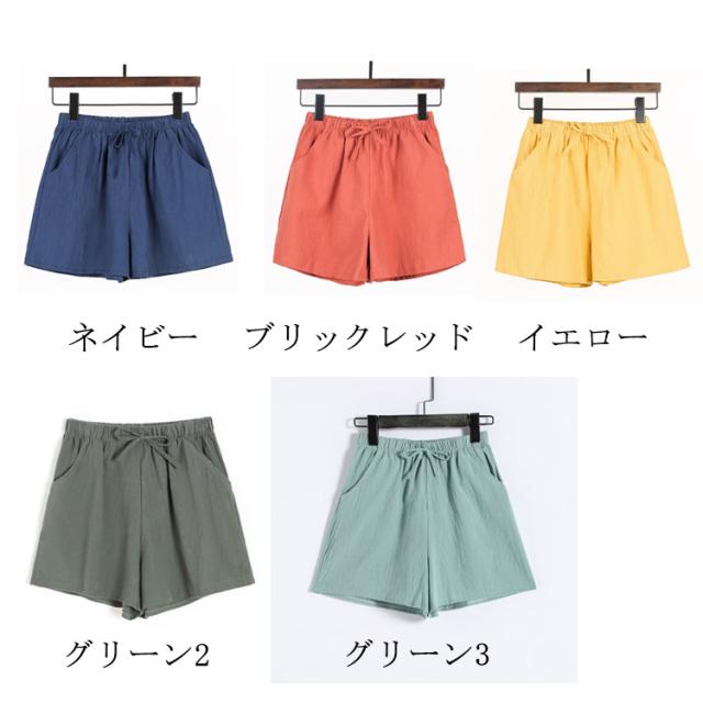 ショートパンツ レディース ハーフパンツ 半ズボン カジュアル ボトムス ウェストゴム 綿麻 体型カバー 春 夏 ワイドパンツ カラーパンツ ポケット コットン 5分丈 五分丈 サマーパンツ 短パン ゆったり 送料無料