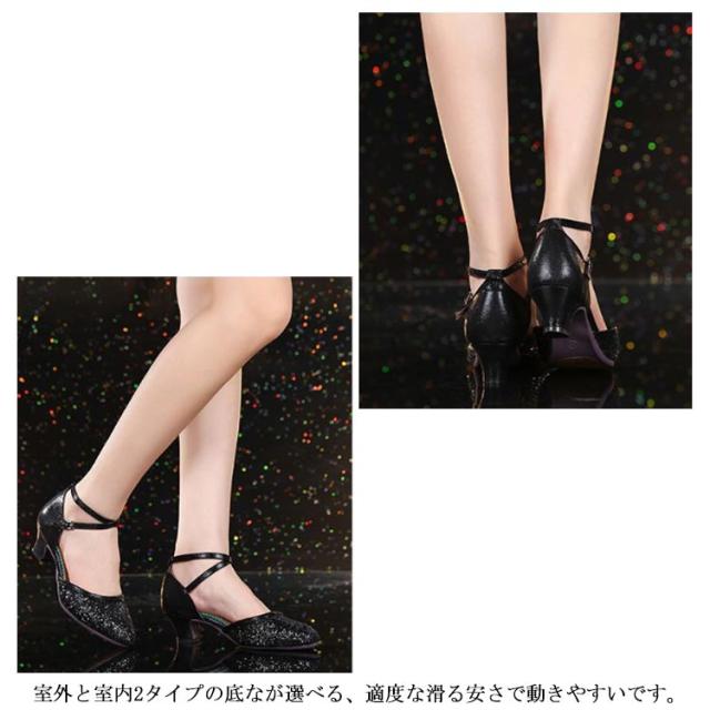 選べる室内専用ソールと室外専用ソール!ダンスシューズ 社交ダンス レディース キラキラ ラテンダンス ジャズ レッスン 美脚 パンプス ストラップパンプス シューズ 疲れにくい 初心者 上級者 ヒール 発表会 ステージ 舞台