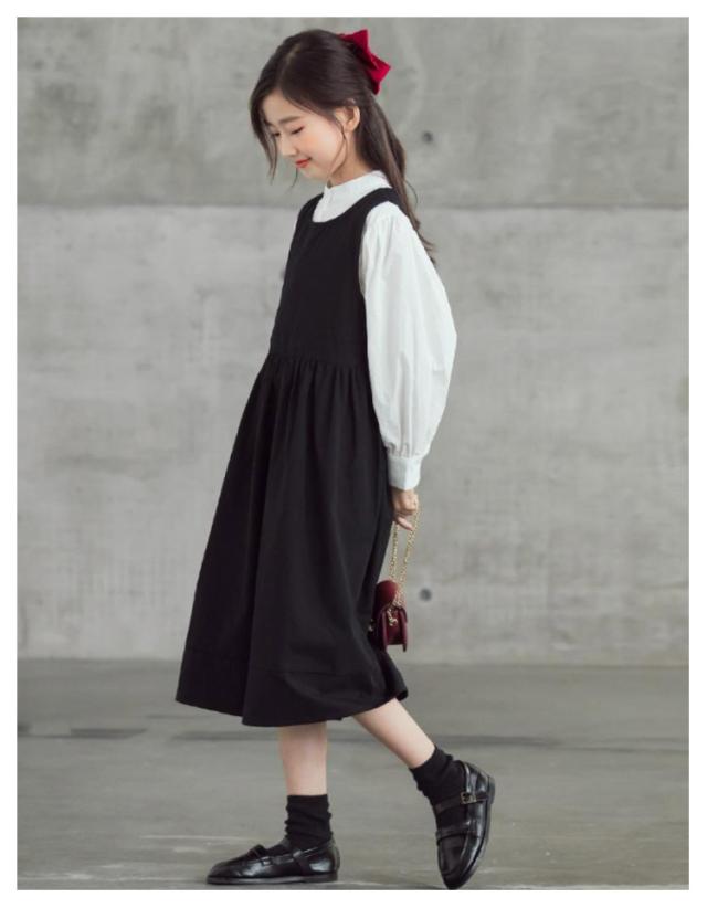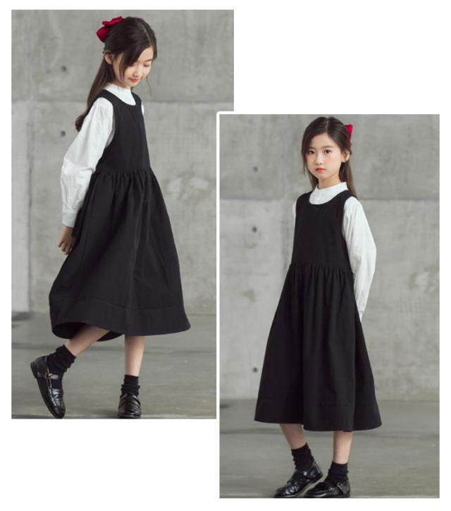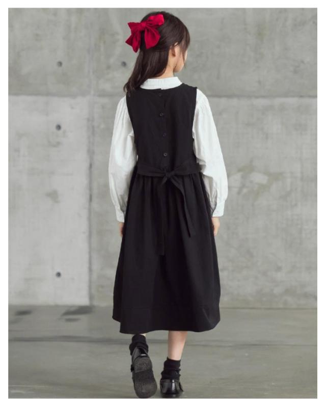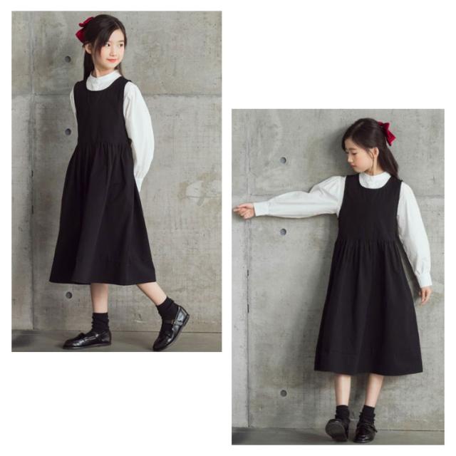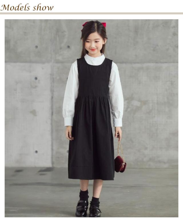 卒業式 ワンピース 女の子 子供 ロング ワンピース シャツ セットアップ キッズ ワンピーススーツ 2点セット 丸襟 長袖シャツ 白シャツ ジュニア 入学式 入園式 卒服 子供服 小学校 中学 受験 スーツ 冠婚葬祭 結婚式 発表会 黒 ブラック 130 140 150 160 170 送料無料