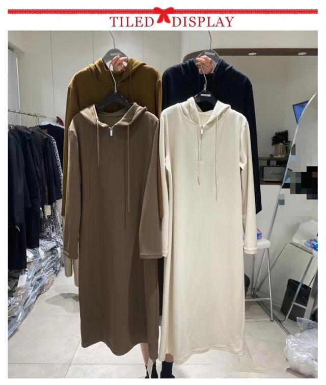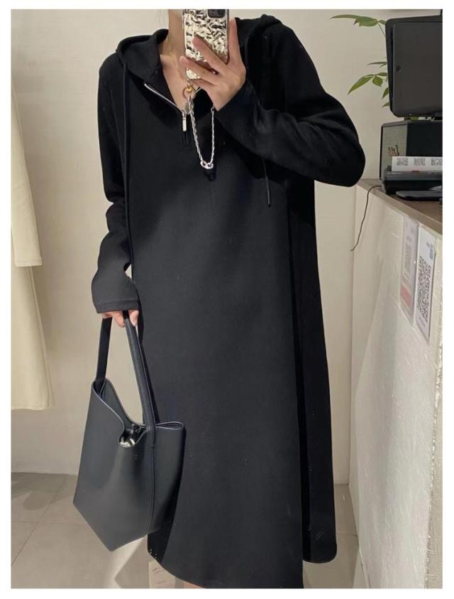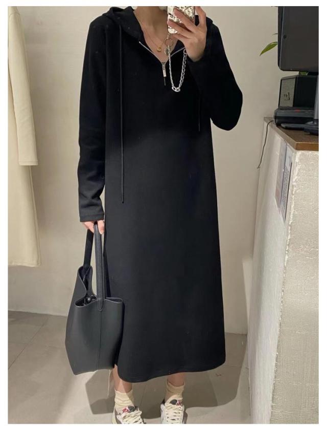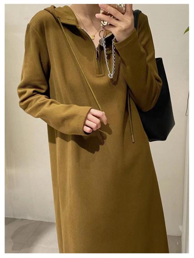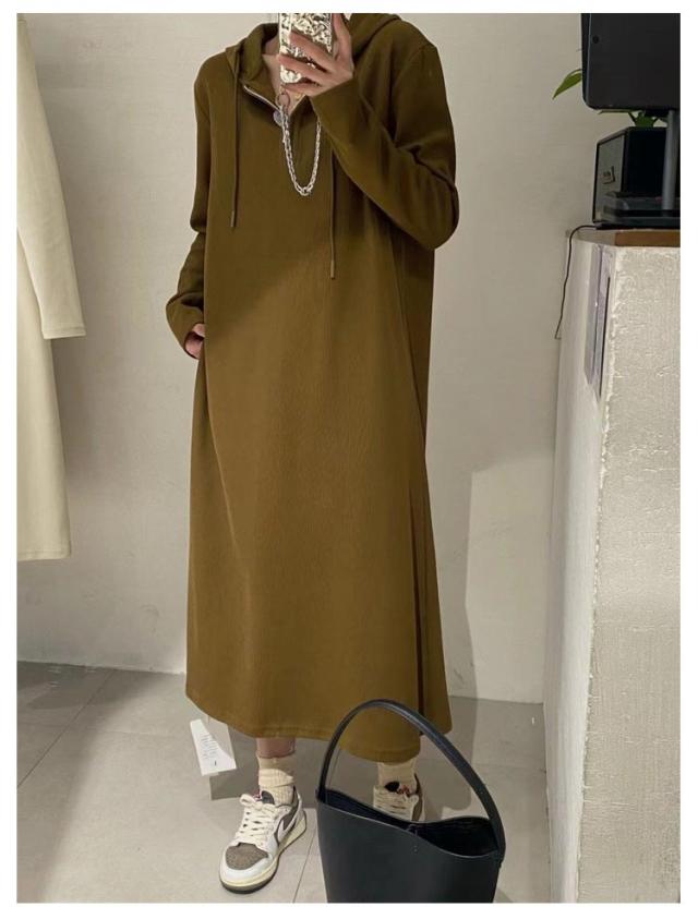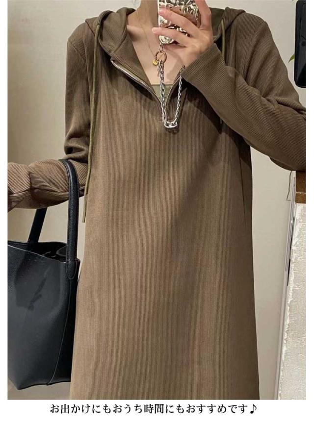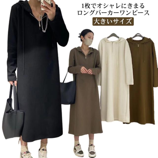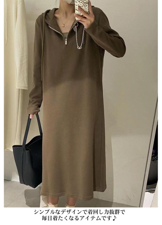パーカーワンピース ロングワンピース ハーフジップ フード付き マキシワンピース 長袖 ミモレ丈 マタニティウェア 大きいサイズ 春 秋 ロングワンピ 通勤 オフィス カジュアル ゆったり シンプル 送料無料