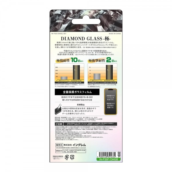 スマホフィルム iPhone 14 13 13Pro ダイヤモンド ガラスフィルム 10H 全面保護 反射防止 ブラック 高硬度 頑丈 丈夫 強い 保護 衝撃吸収 agesugi_ssm