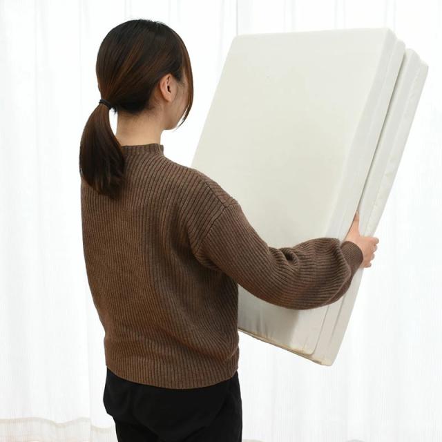 収納にもお手入れにも便利な4つ折りタイプのマットレスです。パタパタっと簡単に折り畳めるので、1枚もののマットレスに比べて取り扱いが簡単。ウレタン製のものと比べると少しだけ重たくはなりますが、小柄な女性でも持ち運びらくらくです。