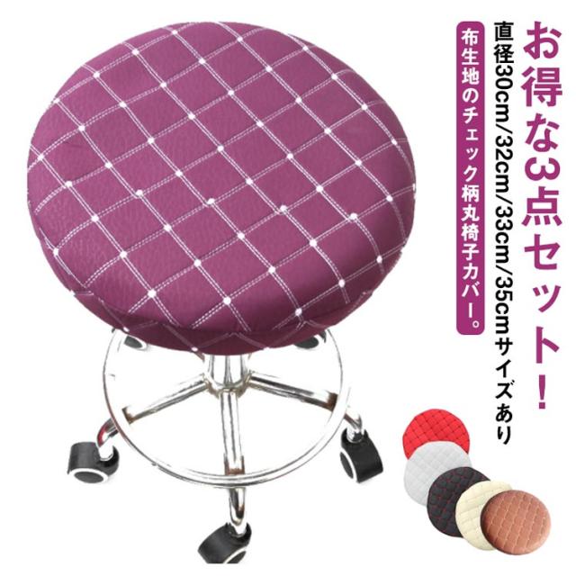 丸椅子カバー 布地 3枚セット スツールカバー 丸型 ストレッチ 回転椅子カバー チェック柄 フィットタイプ ズレない 伸縮性 ゴム 椅子カバー イスカバー 座面カバー イス保護 汚れ防止 キズ防止 模様替え モダン 【送料無料】