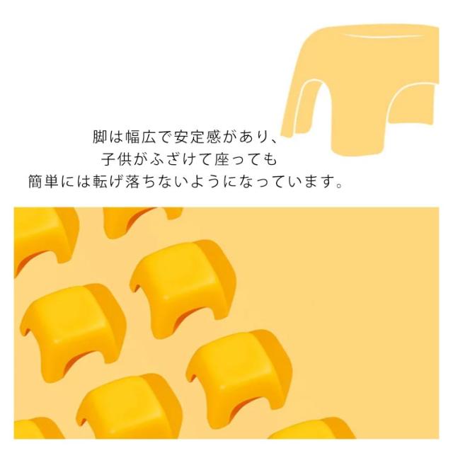 | 見るからに可愛らしいキッズスツール。 カラフルな色でお部屋をぱっと明るく。 脚は幅広で安定感があり、子供がふざけて座っても簡単には転げ落ちないようになっています。 底面に滑り止めが付いている為倒れにくいです。 玄関で靴を履くときの腰掛にちょうどよい高さで、持ち運びもラクチン♪ | |