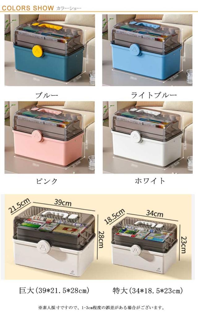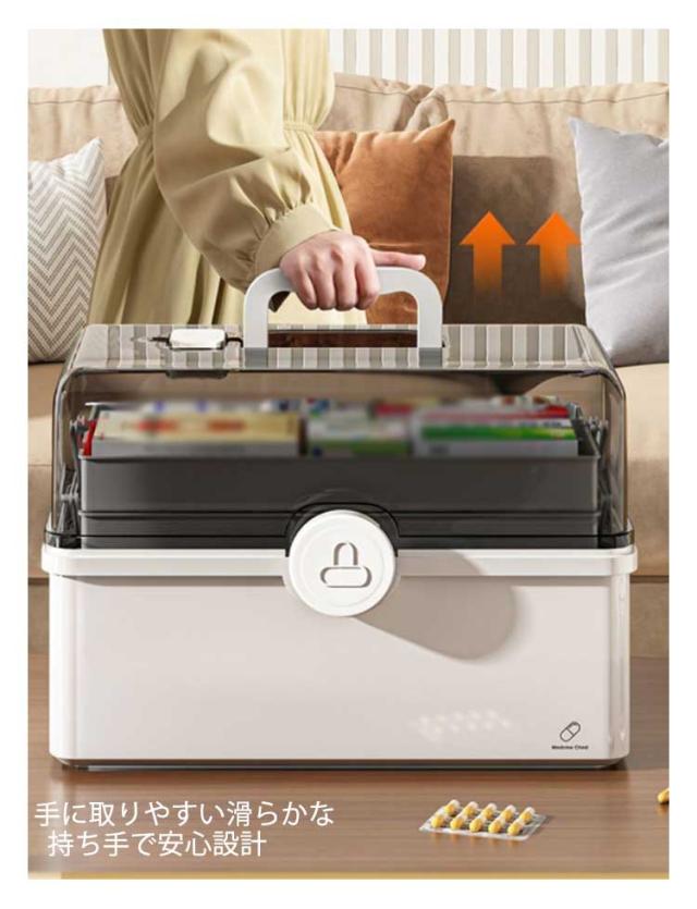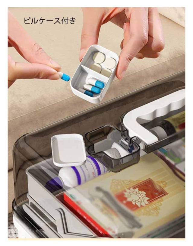 選べる2サイズ 救急箱 薬箱 三段式 収納ボックス クリア 家庭用 車載用救急箱 大容量 多機能収納ケース 救急ボックス 取っ手付き 軽量 コンパクト 携帯便利 応急処置 薬入れ 小物入れ