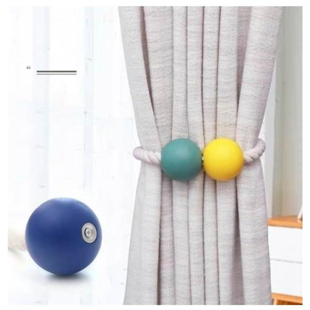 | くるっと巻いてパチンとするだけ。壁を傷めずカーテンを留めるウッドビーズのカーテンホルダーです。 カーテンに巻いて磁石で留めるだけで、簡単にイメージチェンジできるシンプルで使いやすい。 スタンダードにくるっと巻いて真ん中で留めたり、カーテンを挟んでドレープをだしたりと、使い方はいろいろ! ウッドボールのカラーは全10色からお選び頂けます。インテリアやカーテンに合わせて、お好きなカラーをお選び下さい。 | |