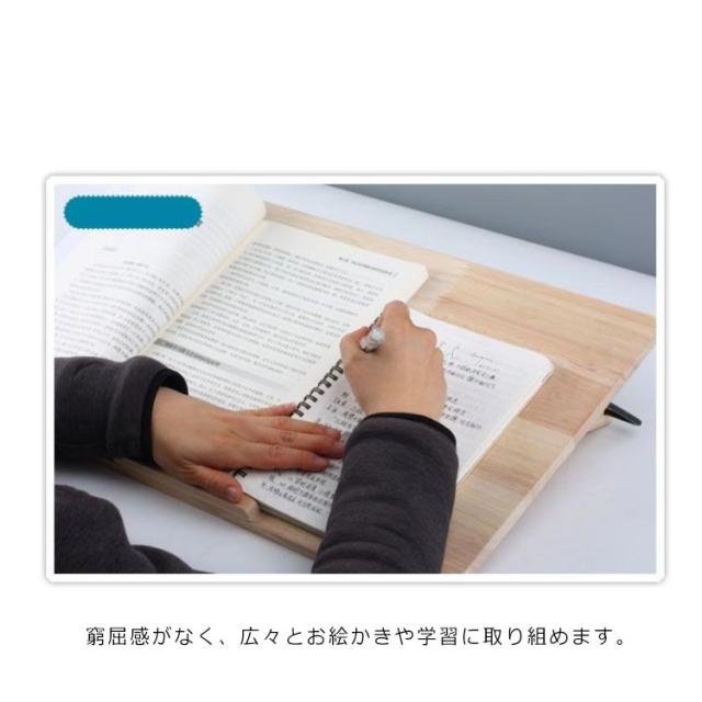 | 絶妙な傾斜で背筋がスッと伸びて正しい姿勢な学習台 ノートパソコンの操作や、タブレット、ノートを横並びで置くのに十分なサイズ。 窮屈感がなく、広々とお絵かきや学習に取り組めます。 5段階の角度調節が可能。様々なシーンで活躍できます。 安定感があり、木製。どんなお部屋にも馴染むシンプルなデザインです。 | |