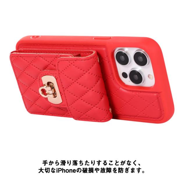 | 今季トレンドのキルティング生地のショルダータイプスマホケース。 カード入れがあるので交通系ICケースなどを入れられるので便利です。 ショルダーで持ち歩くことでコーディネートのアクセントにも使えるオススメスマホケースです◎ 紐はお好きな長さに調整できます。 手から滑り落ちたりすることがなく、大切なiPhoneの破損や故障を防ぎます。 お好みで首掛け、斜め掛け、両用OK。男女問わずお使いいただけます | |