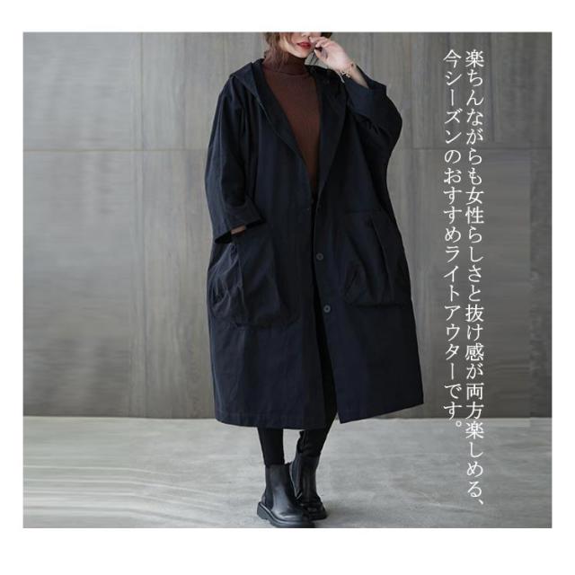 | デイリーのちょっとしたお出かけや旅行、お子様と公園で遊ぶときなど、さまざまなシーンで活躍します。 2022年春に大活躍する裏地ありフード付きレディースコート。大きすぎずタイトすぎず、程よいユルさにこだわったサイズ感やシルエット。 サッと腕まくりをしてもストレスなく快適で、こなれ感のあるニュアンスにキマる、こだわりのディテールです。 楽ちんながらも女性らしさと抜け感が両方楽しめる、今シーズンのおすすめライトアウターです。 | |