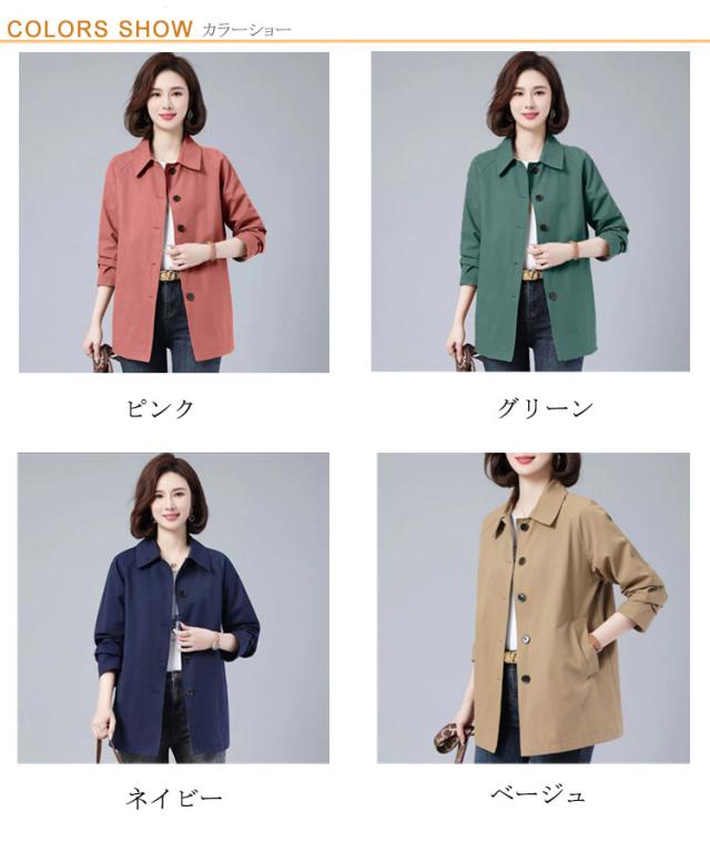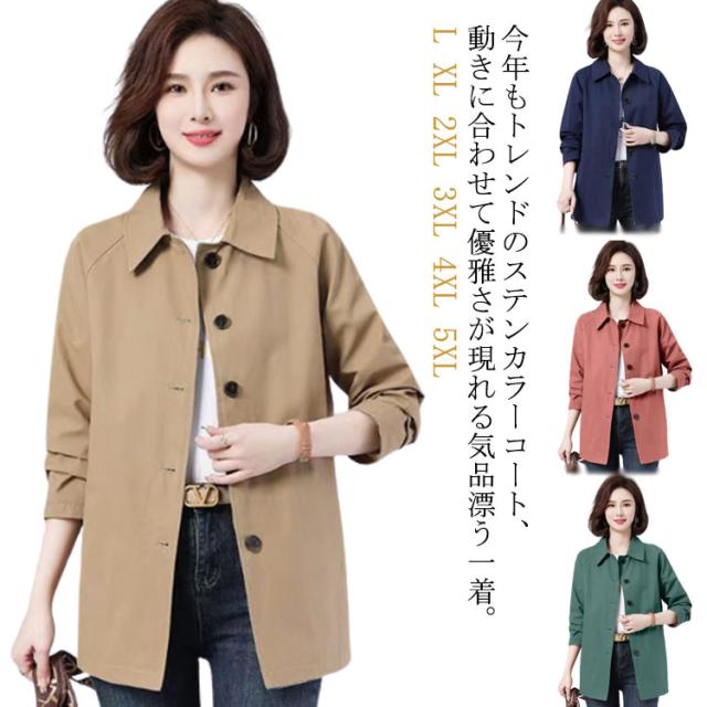 送料無料 ステンカラーコート 春 アウター コート レディース スプリングコート トレンチコート ミディアム ショート 春コート カジュアルコート ゆったり 大きいサイズ 薄手 通勤 40代 50代