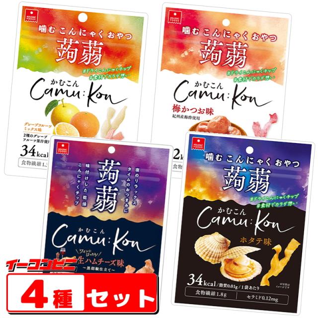 アスザックフーズ かむこん 11g 4種各1袋セット(ホタテ味/梅かつお味/生ハムチーズ味/グレープフルーツ味)カムカムこんにゃく 蒟蒻お菓子 ゆうパケット2
