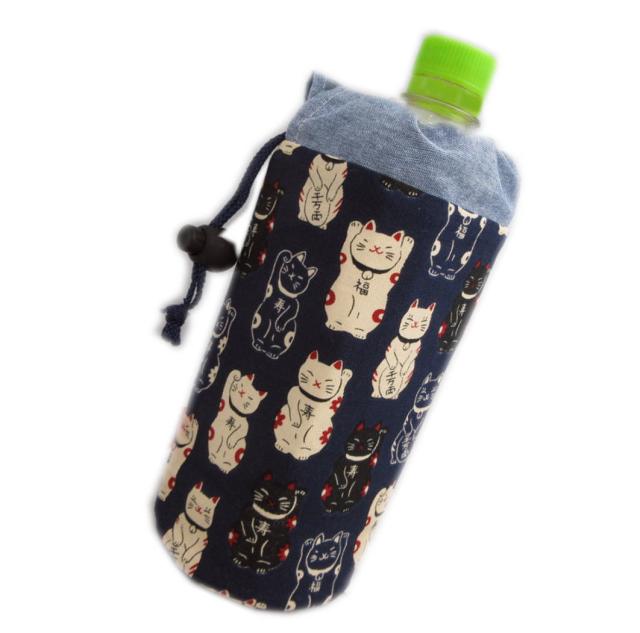 ペットボトル カバー ケース ホルダー 和柄 福あつめ招き猫濃紺 日本製 500ml 女性用 レディース メンズ 男性用