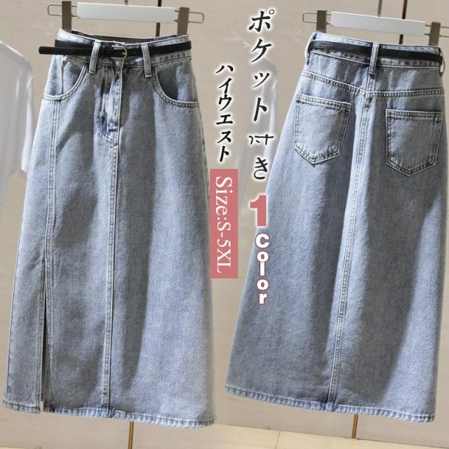 スカート デニムスカート ロング丈 マキシ ポケット付き スリット ハイウエスト 大きいサイズ おしゃれ 着痩せ 春夏 ファショ